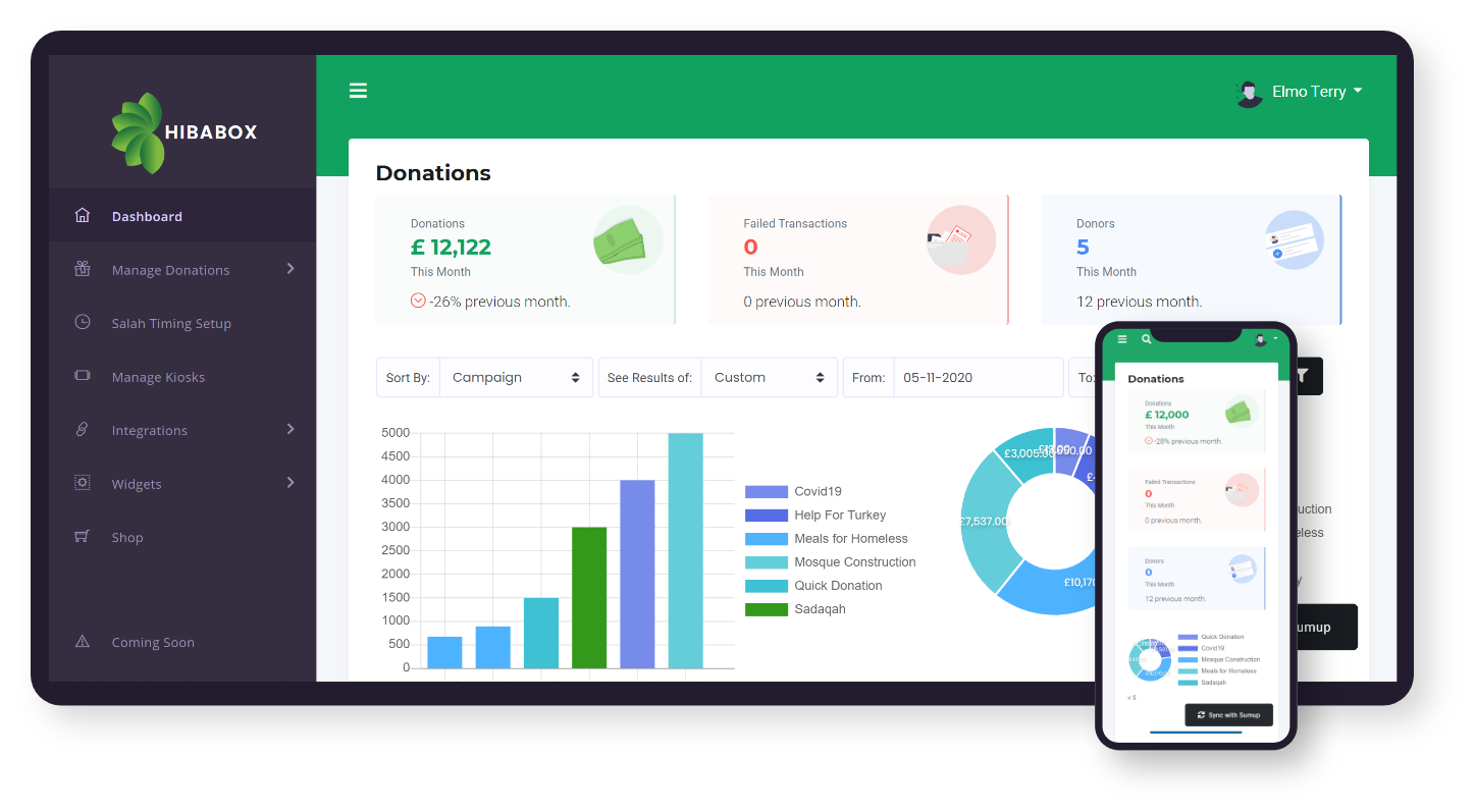 Hibabox is an innovative cloud based donation management software system, made for the mosque and charities needs, that innovate the way a charity operates their day to day administration work and provides easy to use technology, managing and automating various aspects of administration tasks.
